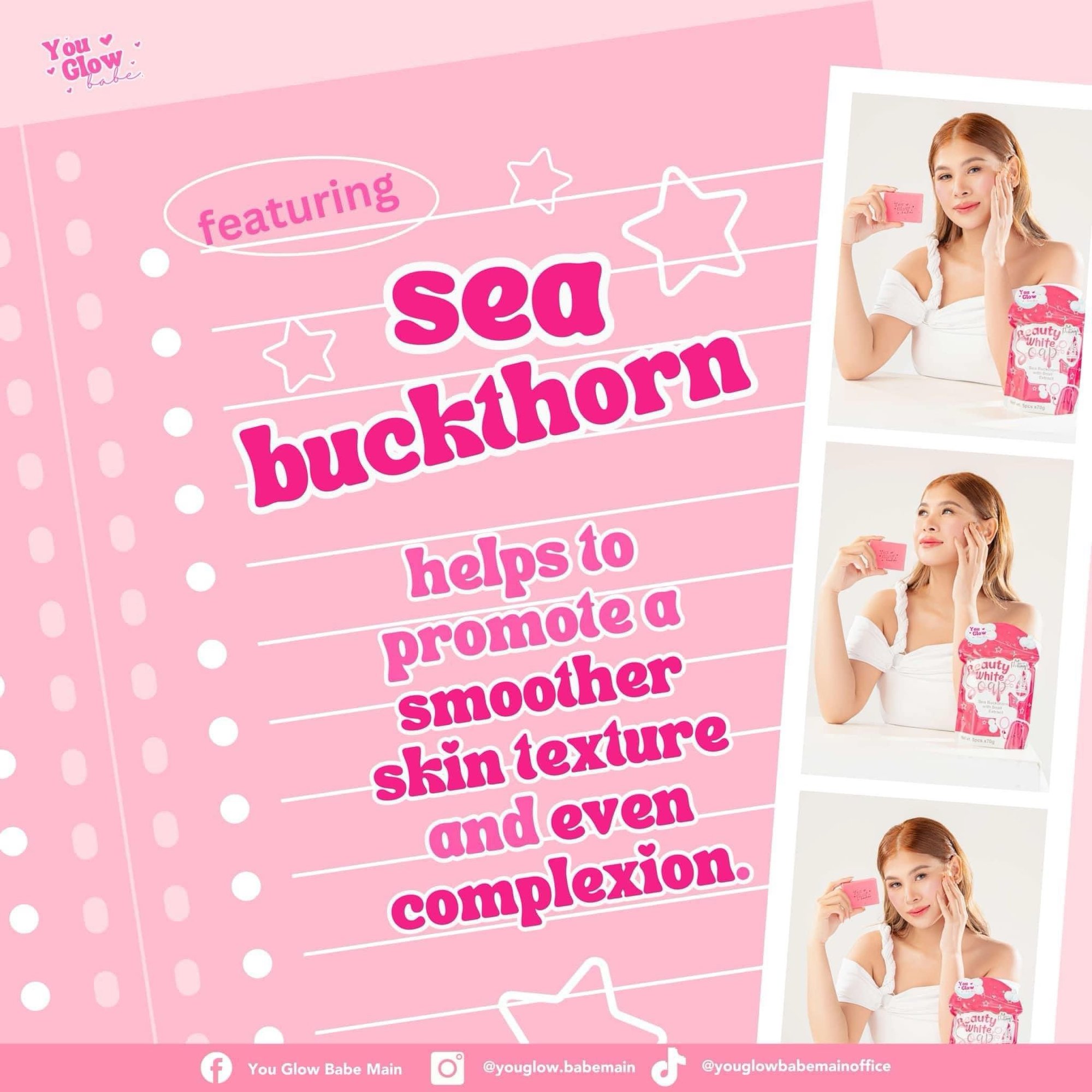 Introducing You Glow Babe Beauty White Soap's latest skincare favorite: Sea Buckthorn! Packed with vitamins, antioxidants, and essential fatty acids, this powerful plant extract is here to transform your skin.